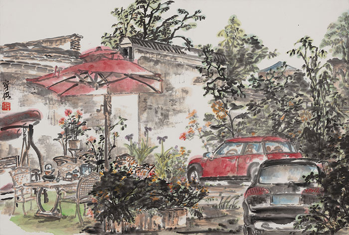 寧波《林蔭小路》 45cm×48cm 紙本設色 2023