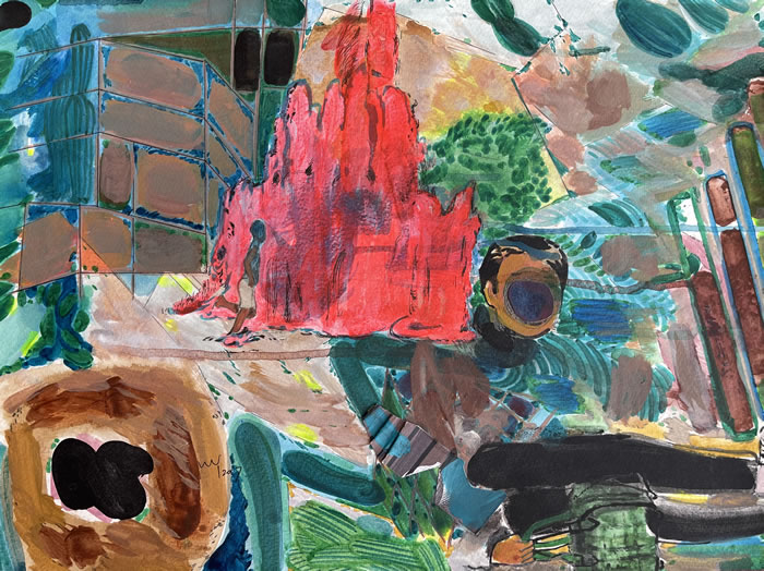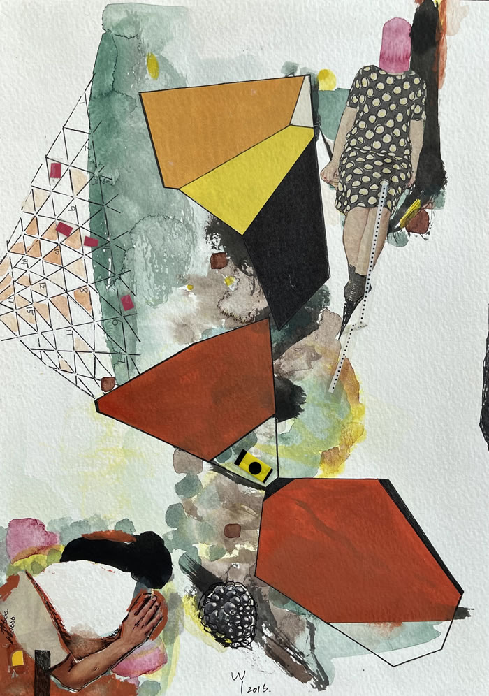 沒有彼岸,唯有自渡?;蛟S,創作就是吳烊對抗生命漂泊輾轉的方式。近十多年,香港、倫敦、紐約生活時空的轉換,連帶語言、飲食、身份覺知和認同,客串或長居,主體與客體變換的模糊與清晰,或許曾有期待,有質疑,有調侃,甚至還有些隱喻,對時空對文化的獨立思考都融在她每天的生活里,也正是如此,才有了這次展覽的紙上水彩拼貼系列。
