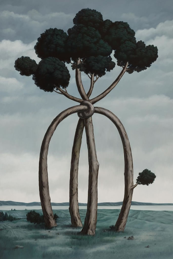 然而,展覽標題的“秘境”兩字應該緊接一個“問號”。博爾赫斯在《莎士比亞的記憶》中提到——人類的三個能力:記憶、理解、意志并非學究式的幻想。周松的“新自然系列”無疑是將這三個能力,最大程度的轉換到他的作品中為他所用。于是,“現實”與“超現實”的碰撞力,“穩定”與“非穩定”間的張力都蓄勢在他的作品里。他的藝術觀念也由此上升至“宇宙觀”與“人類學”的探索。他仿佛就是一個“哲學家”,先拋出一個問題——秘境?繼而,通過不同媒材和觀看角度的藝術創作,不斷辨證探索,制造出荒誕而真實存在的“思考結果”。