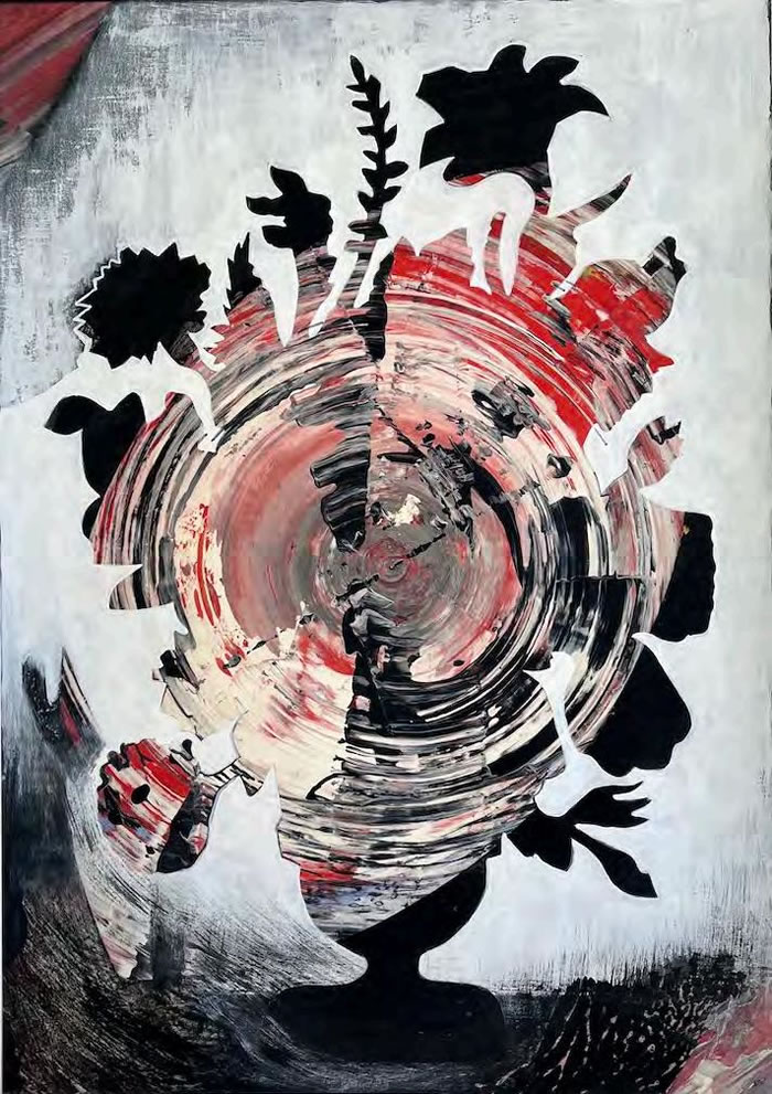 因為花束作為一個概念是露茜安近期藝術作品的核心,所以她對花本身的引用完全在于將它們的輪廓表現為花瓶中的花束形式。這個輪廓結構中包含了對風景、女性和神話的具象或抽象描繪,這些都是她之前一些畫作的一部分。通過這種方式,每件作品都是將選定的花束與不同的底色通過繪畫完成的,因為它的歷史語境和可能性既反映了生活的不同時刻,又具有新的意義。然后,在這個輪廓結構的內部和外部以不同的方式使用油畫顏料來創作,將內部和外部統一在當下。