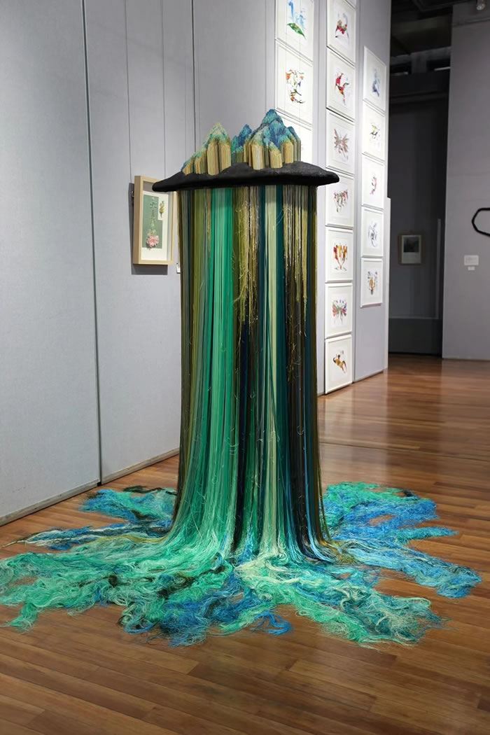 此次展覽由浙江師范大學王雷教授擔任策展人,邀請了龍游本地及外地的傳統手工藝人和國內當代藝術家,他們用農具、紙張、雞蛋、絲線、魚鉤、掃帚、麥稈等材料進行創作,或用不同的形式致敬同一件作品,或借同一種材料表達不同的情感,傳統中融入了當代,當代中又處處透露傳統,在兩者的交織與碰撞中,手工藝與藝術進行了新的排列組合,也產生了更多可能性……