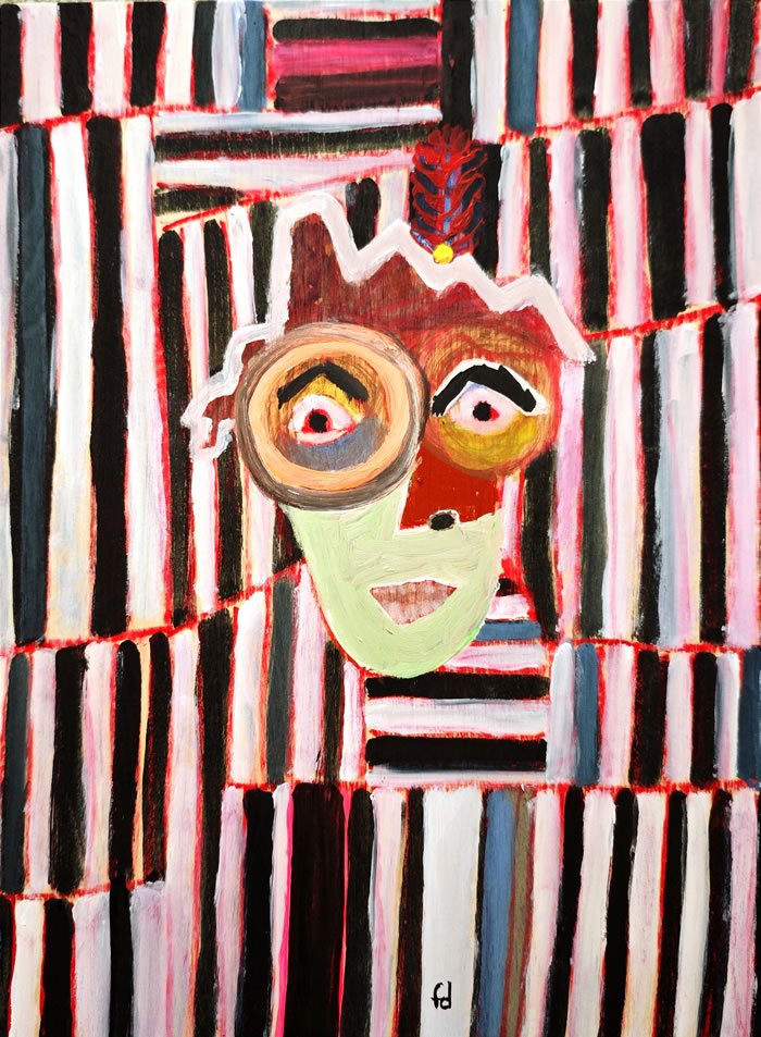 A clown in Paris,巴黎的小丑(2023),20 x 30cm,wood - acrylic and oil 木板-丙烯、油彩