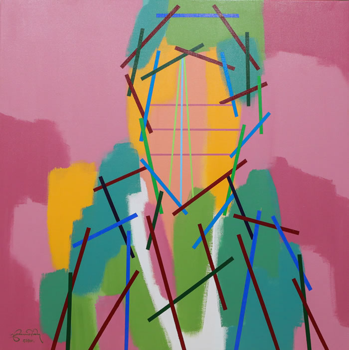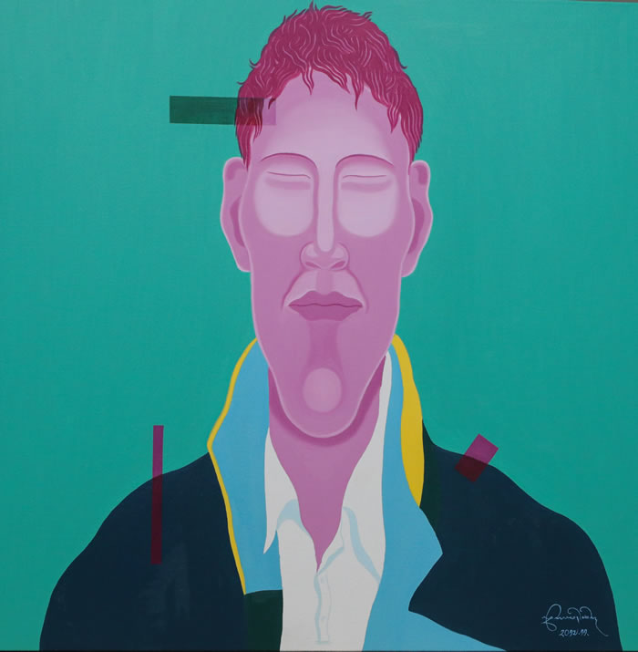 《自畫像》系列創作于2017年,是藝術家對自己的審視和思考。 《非我像》系列創作于2023年,是藝術家對自我的重新審視。這兩個系列作品,反映了藝術家對于傳統藝術規程的脫離和重新思考。 從《自畫像》到《非我像》,赤列德慶逐漸突破了“像”的理念,人物形象變成用彩色線條搭建的更簡單的、近似于冷抽象的形式,在色塊的處理上也由原來具有清晰光滑的界限的色塊,變為了邊界模糊的色團。