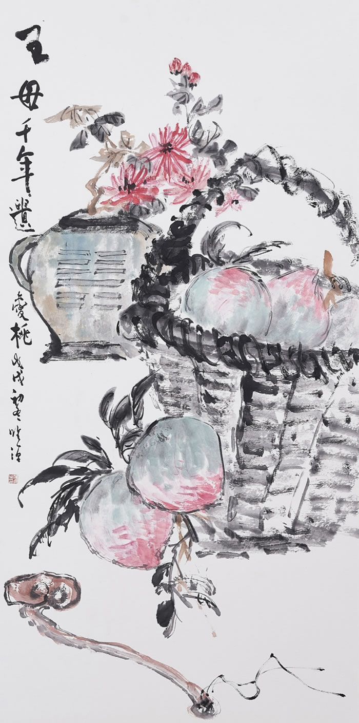 名稱:王母遺桃 作者:宋唯源 材質:紙本 尺寸:68×136cm 年代:2018