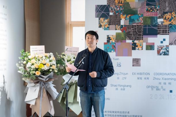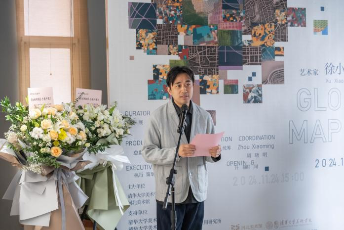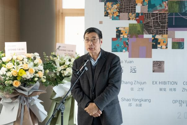 清華大學美術學院博士研究生導師張敢教授致辭,他主要強調了徐小鼎作品中的社會價值和學術價值,并突出了整個展覽的策劃和組織工作的重要性。