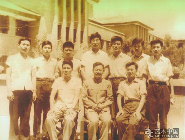 1964年中央音樂學院附中首屆樂器制造班畢業照,前排左起為趙玉金老師(班主任)、王湘、陳自明(專業課老師),第二排右二為趙岐生。