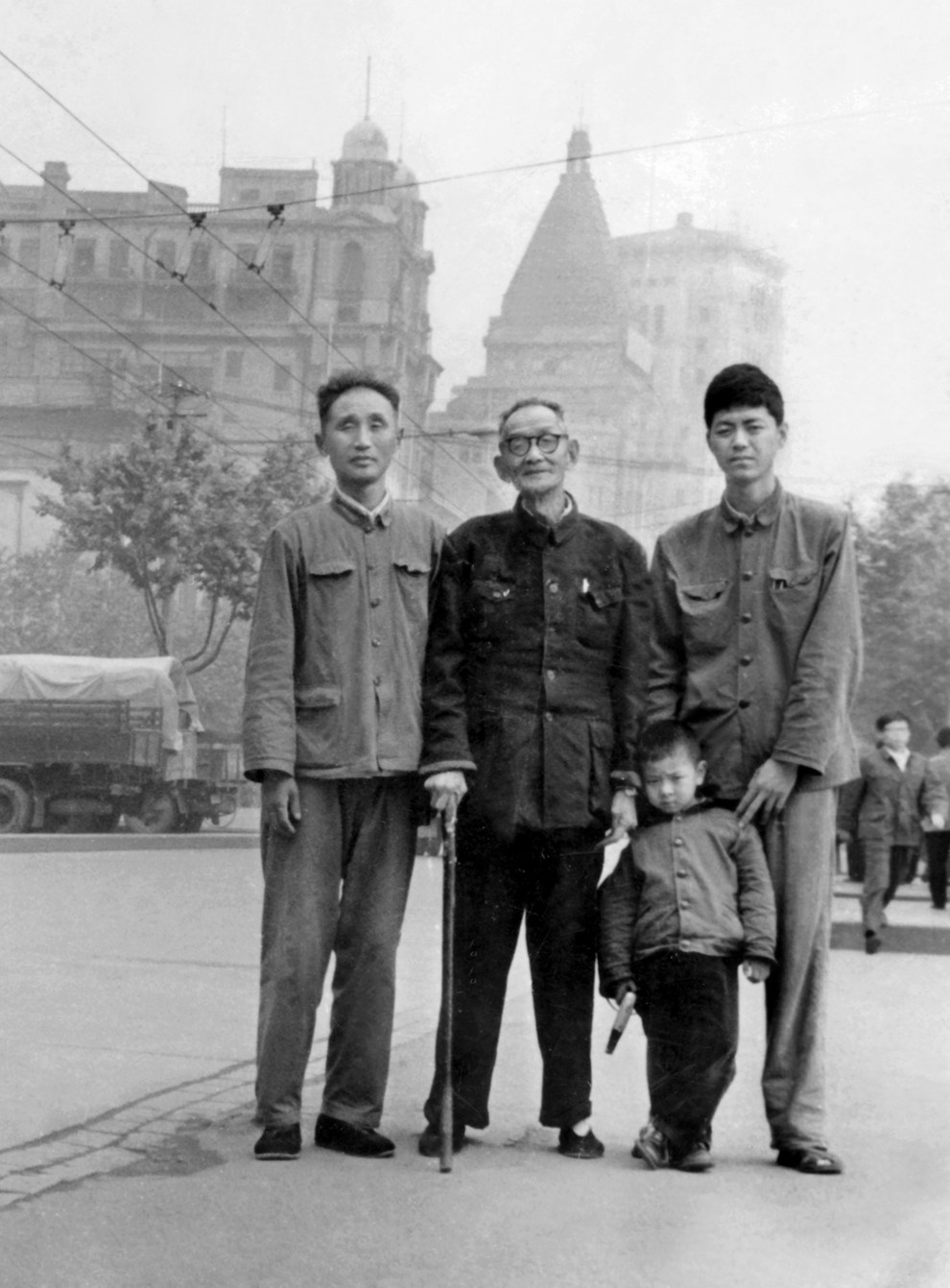 1979年10月,李苦禪(前排左)、蕭龍士(前排右)、薛志耘(后排左)、歐陽龍(后排右)