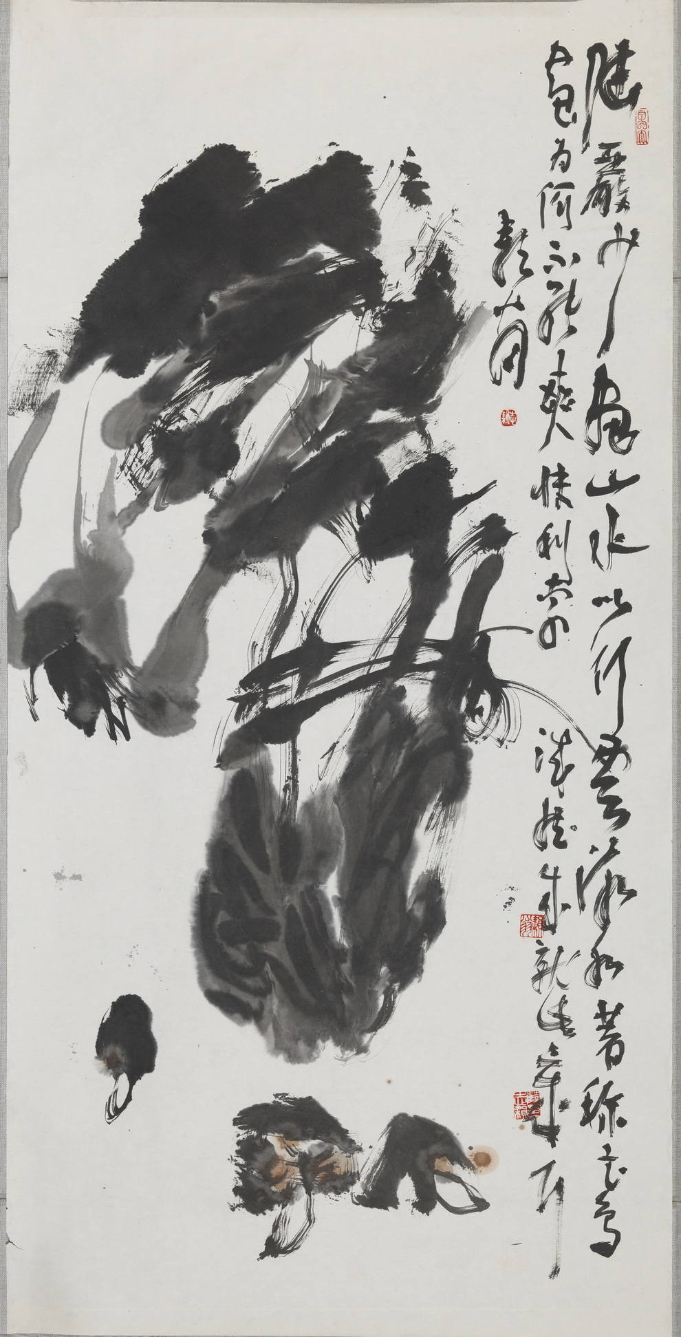 釋文:陸儼少畫山水以行云流水著稱 花鳥畫為何不能爽快利索 誠然 成就此章耳 耘翁