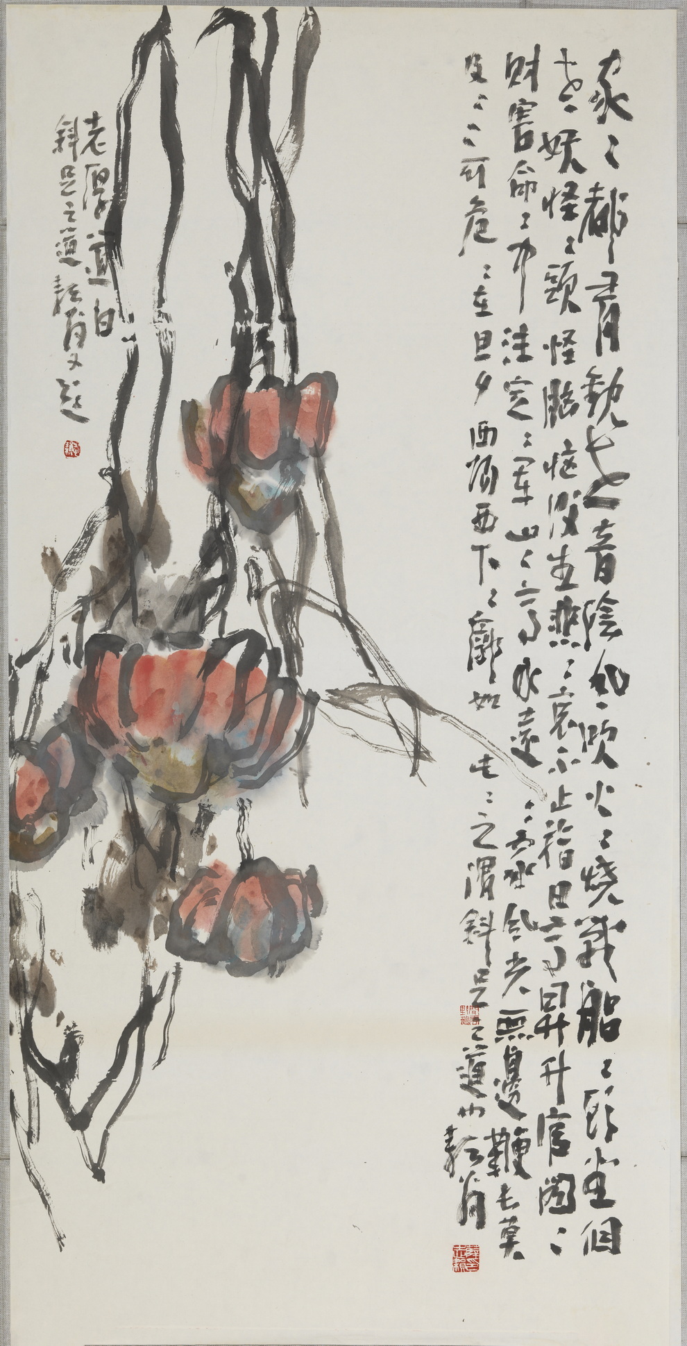 釋文:家家都有觀世音,陰風吹火,火燒戰船,船頭坐個老妖怪,怪頭怪腦,惱后生悲,悲哀不止,指日高升,升官圖,圖財害命,命中注定,定軍山,山高水遠,遠處風光無邊,鞭長莫及,岌岌可危,危在旦夕,夕陽西下,下廓如此,此之謂斜足之道也,耘翁。 老厚道(白),斜(足)之道,耘翁又題
