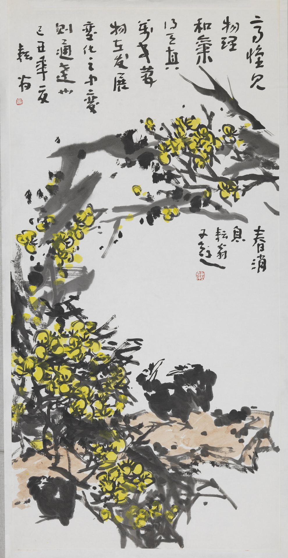 釋文:高懷見物理 和氣得天真 萬事萬物在發展變化之中 變則通達也 己丑年夏 耘翁 春消息 耘翁又題