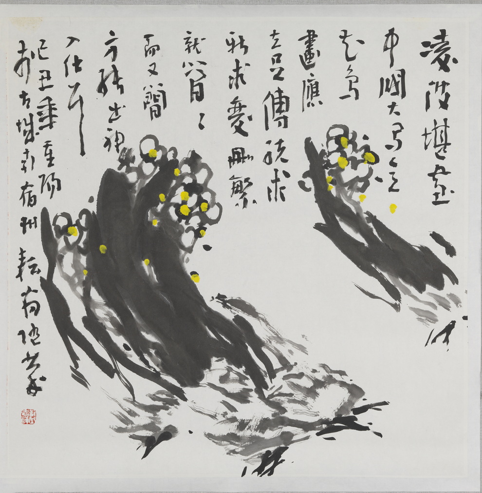釋文:凌波堪畫 中國大寫意花鳥畫應立足傳統求新求變 刪繁就簡 簡而又簡 方能出神入化耳 己丑年重陽于古城南宿州 耘翁隨筆