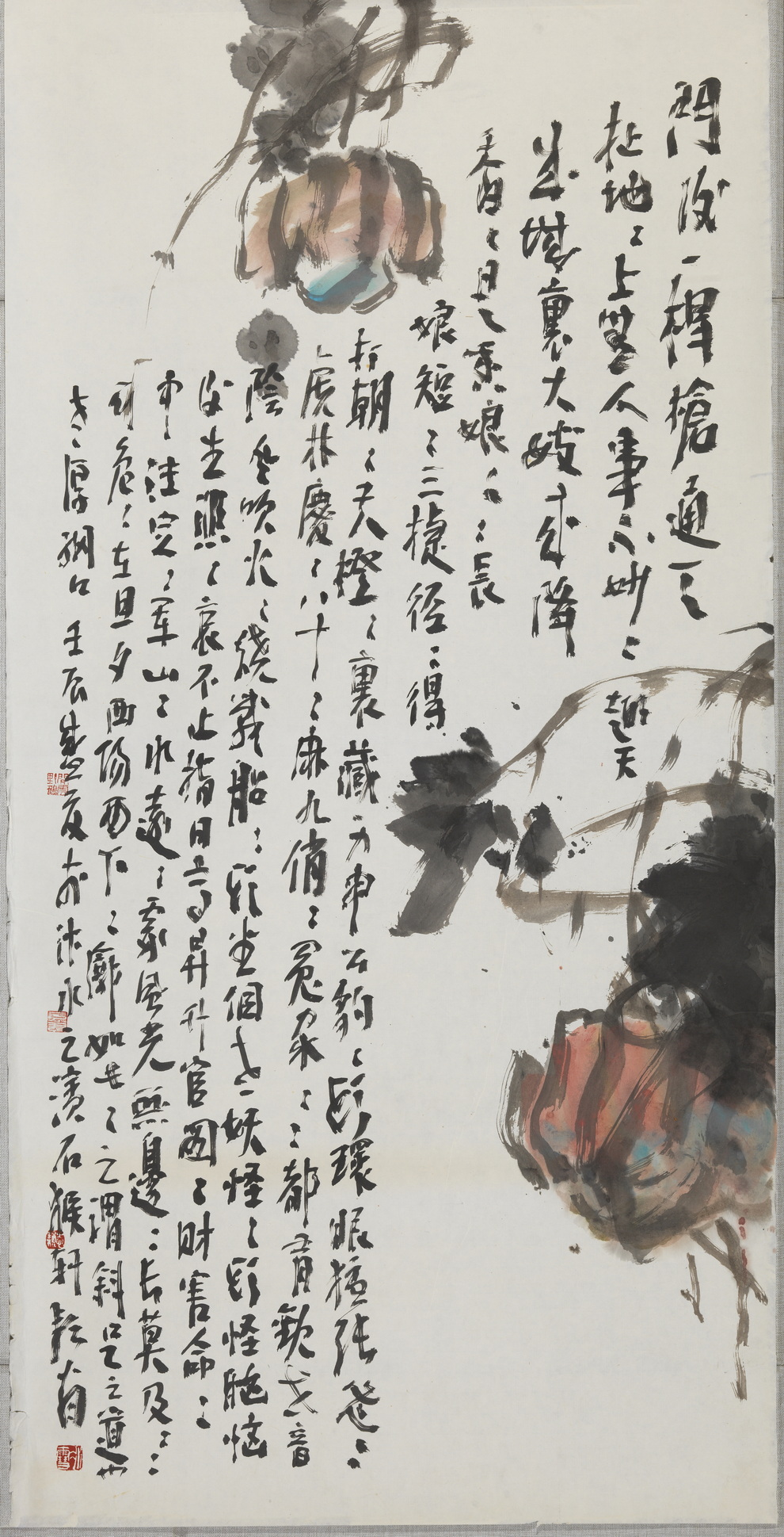 釋文:門后一桿槍,通天扯地,地上無人事不妙,妙趣天成,城里大嫂來降香,香是香娘娘,娘娘長娘娘短,短三捷徑,徑得打朝,朝天橙,橙里藏身,申公豹,豹頭環眼猛張飛,飛虎林慶,慶八十,十麻九俏,俏冤家,家家都有觀世音,陰風吹火,火燒戰船,船頭坐個老妖怪,怪頭怪腦,惱后生悲,悲哀不止,指日高升,升官圖,圖財害命
