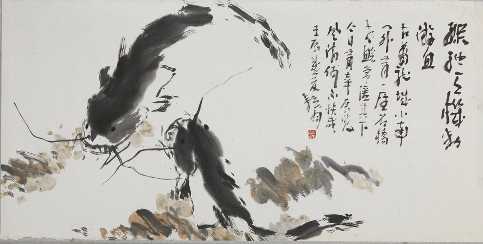 釋文:縱馳天機動游魚-古蕭龍城小南門外有一座石橋-老鯰常匿其下-今日有幸展覽風流-何不快