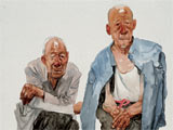 老兄弟(水彩。木碳)53x47。5cm---2008年