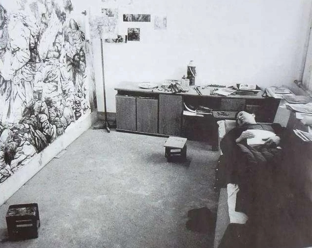 1998年3月,李伯安先生世前兩個月張銘澤先生為他拍攝的畫畫中勞累休息的照片,畫室狹窄簡陋,他和蔣兆和先生都秉承傳統文化中“士人的理想”,實踐著傳統文人“士志于道”的理念