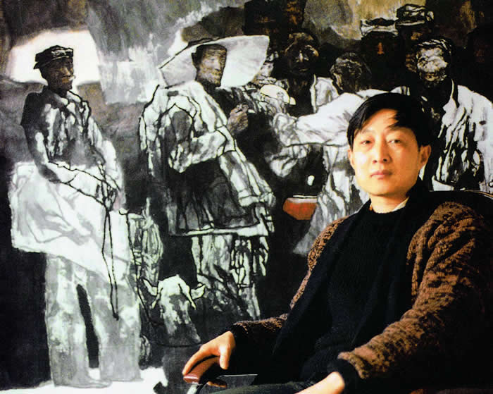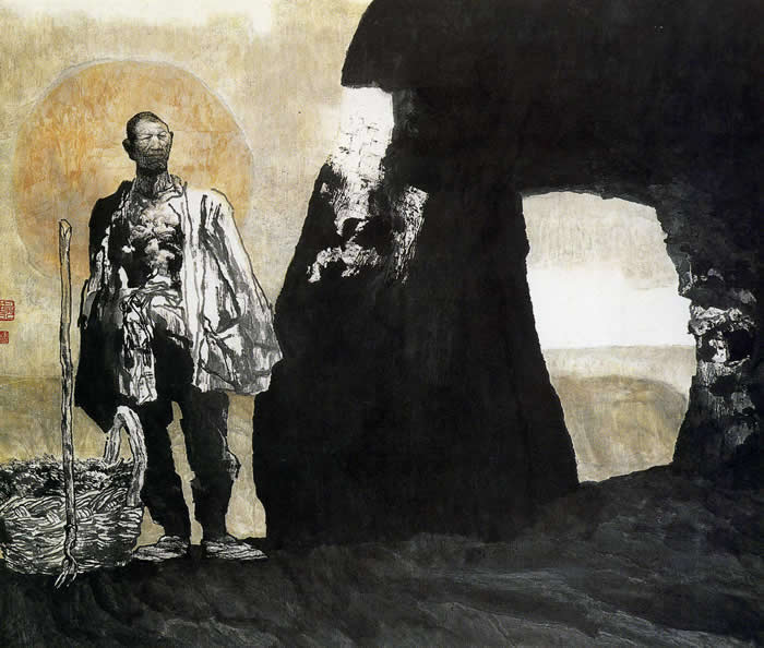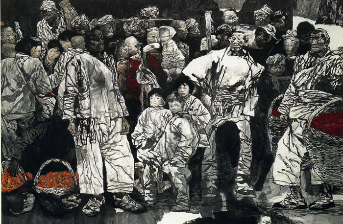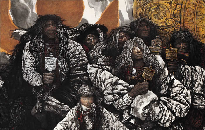 他歷時十載創作的人物長卷《走出巴顏喀拉》,以中華民族的母親河——黃河為創作的構思依托,用群像似的構圖,從黃河之源圣山巴顏喀拉畫起,通過一組組蒼茫凝重的藝術形象和浩然大氣的節奏安排,寄寓了大河東流去的萬古豪情,贊揚了中華民族賴以生存、發展并能夠自豪地屹立于世界民族之林的黃河文明。作品以它高昂的立意、恢宏的氣象、精湛的刻畫和獨具個性的藝術語言,當之無愧的躋身于中國人物畫經典作品之列。