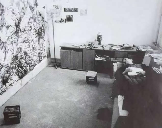 李伯安1998年去世前最后一年在畫室創作過程中休息