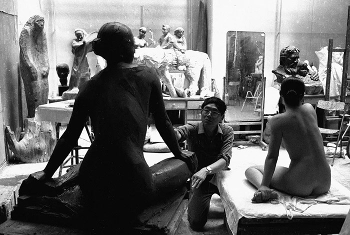 司徒兆光為吳作人先生塑像,圖為司徒兆光與吳作人、蕭淑芳夫婦合影(翁乃強先生拍攝)