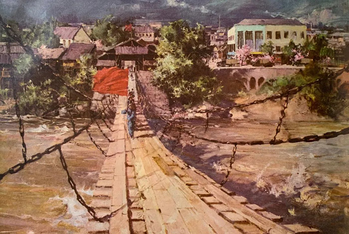 崔開璽,瀘定橋,布面油畫,53.5×77cm,1975年