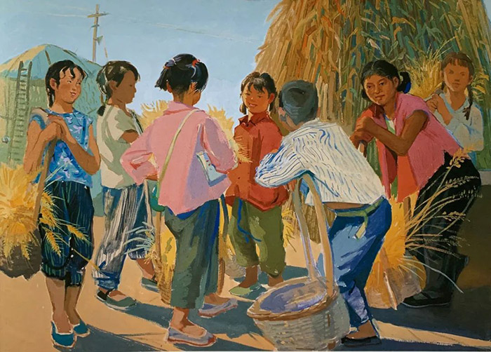袁運甫,小學生們,紙本水粉,39×54.5cm,1972年