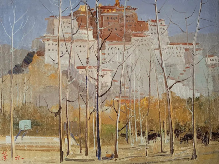 吳冠中,布達拉宮,紙本油畫,28×36cm,1961年