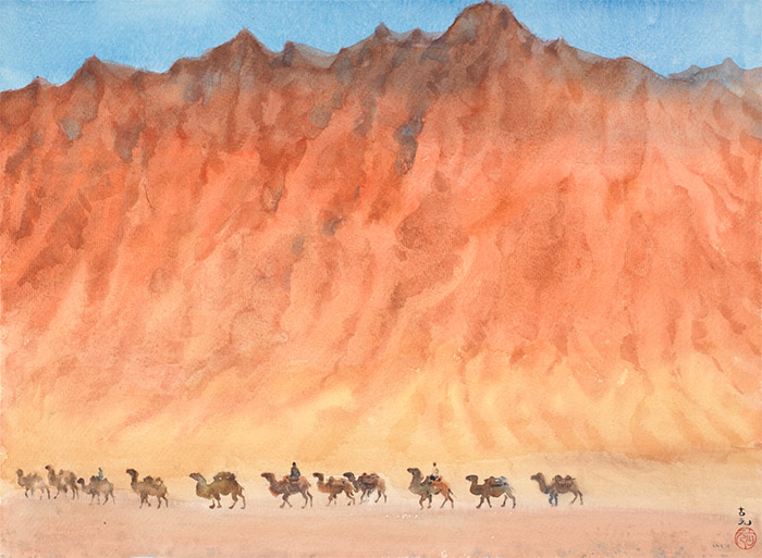 古元,火焰山,紙本水彩,35×42cm,1984年