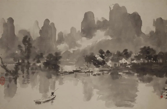 徐悲鴻,漓江春雨,紙本水墨,73.8×113.8cm,1937年