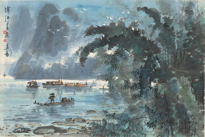 宗其香,漓江春雨,紙本彩墨,45.5×68cm,1988年