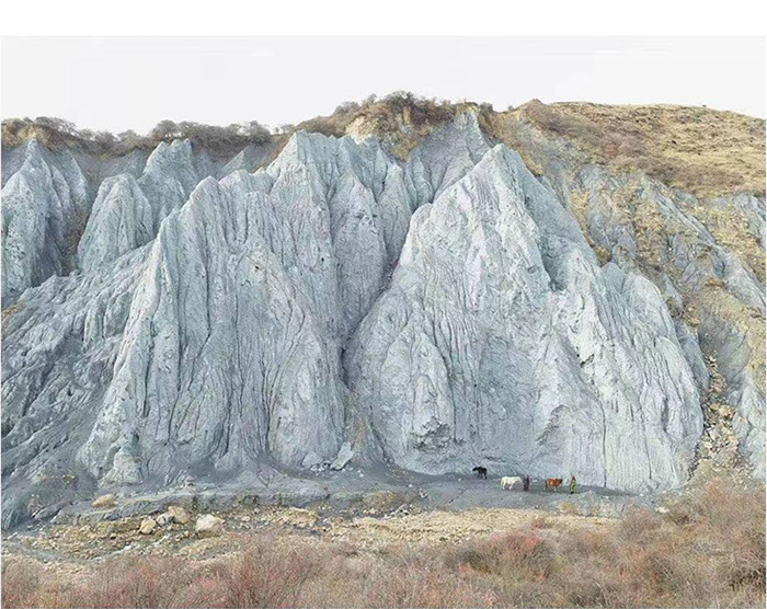 另外一座山,差不多隔了十幾公里,只是略小一點。當地的藏民用馬把石頭挖回去修房子,它就變成一座礦山,兩座山是同樣材質,形式也接近,但他們的功能完全不同。所以我即便在藏區,我拍的也不是幾萬年、幾億年前的洪荒形象,我所關注的是當代的事物。