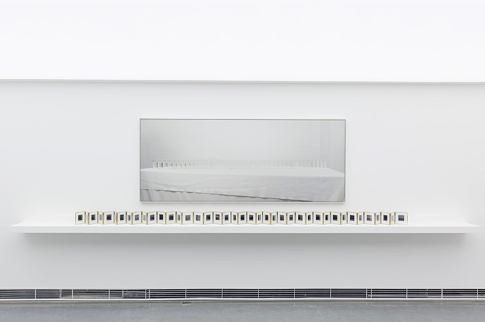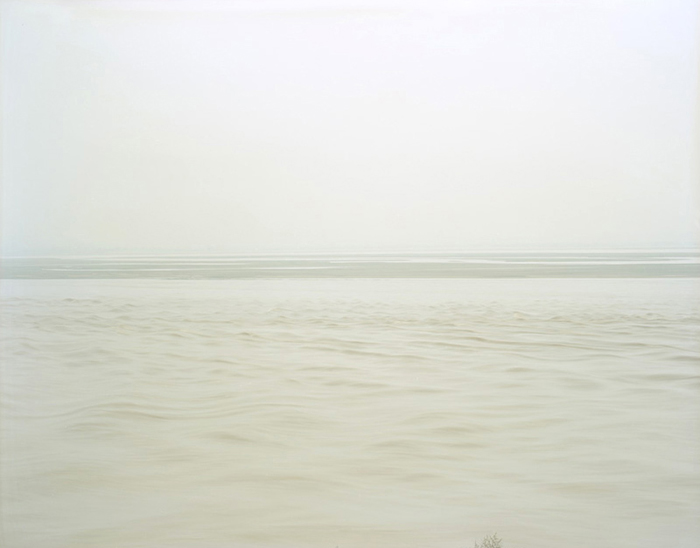 另一幅:沙丘岸邊,一個人立于水中,天水間一片空寂。