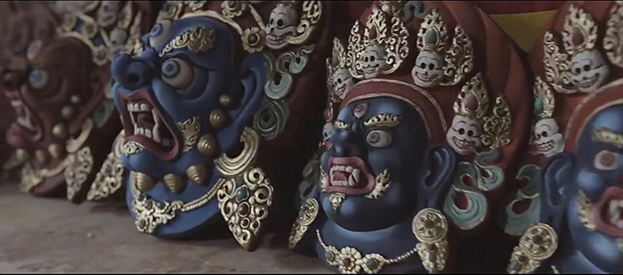 四龍降澤認為藥泥面具,“面”是至關重要的。他制作的面具里,除了寧靜的佛菩薩形象,呈現憤怒相的護法神。有微笑的,有怒目而不恐怖的的,還有憤怒中帶一點慈悲的,充分表現出他們的豐富性。