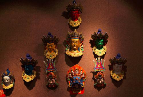 完成了原料調配的工作,還需經過雕刻、制陶、著色、發酵、晾制等十多道工序。祭拜過山神并裝入高僧開光的經文,一個完美的藏傳藥泥面具才算真正誕生。