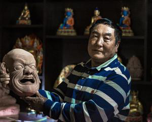 四龍降澤的家人都是手藝人,特別是他的一個多才多藝的叔叔,在當地頗有名氣。14歲開始跟隨家族里的父輩學習藏傳藥泥面具制作,也是受家族影響,四龍大叔從小就喜歡泥塑。至今已經過去了近半個世紀,如今的四龍降澤已經從一個帥小變成了一位67歲的老人。時間給他留下了條條皺紋,也讓藏傳藥泥面具這門絕活兒在現代看來,變得越發珍貴。