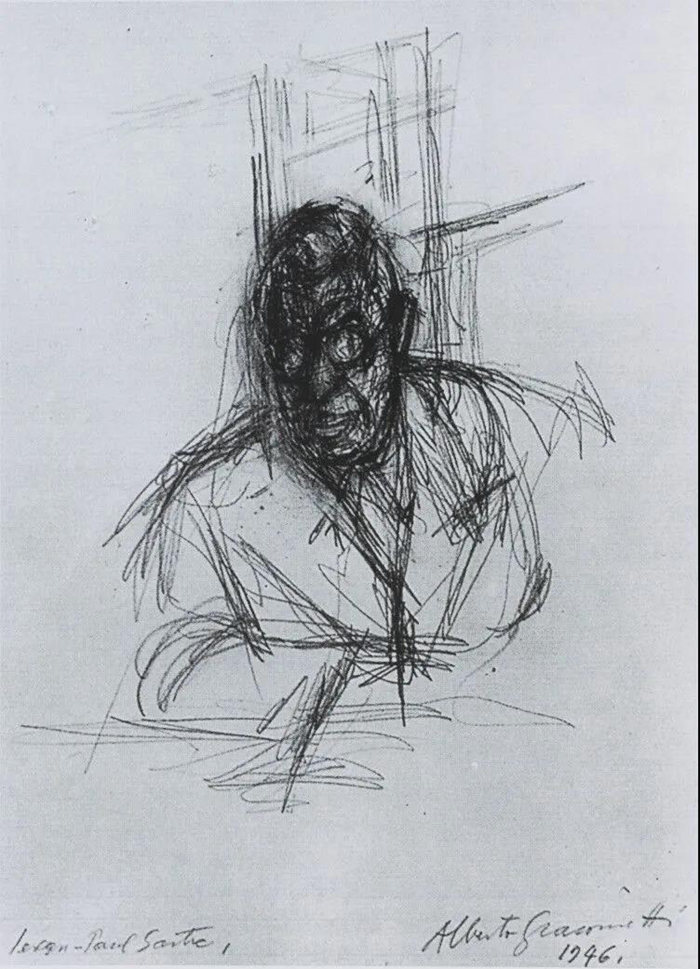 這種體驗似乎帶有超現實主義的驚悚,但更像是此前薩特小說《惡心》中的洛根丁的經驗:他看到熟人變得陌生了,還看不清自己的臉……它蘊藏著賈科梅蒂意識的新覺醒,藝術家由此逼迫自己否定既成的雕塑和繪畫語言,“削去空間的脂肪”,向存在的虛無邁進,薩特自然成了他的知音,稱之為“追求絕對”。