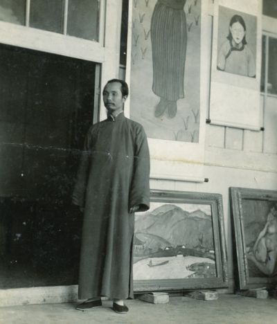 1930年代,關良在畫室 ?廣東美術館