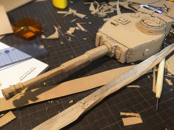 Monomi Ohno創作的紙箱作品,小到零食鞋子小動物,大到汽車坦克甚至宇宙戰艦,每一件作品都是細節滿滿、極致細膩,每一個零部件、每一顆鉚釘、每一處接駁點都是有依有據,經得起推敲考究,可以說真實還原了。