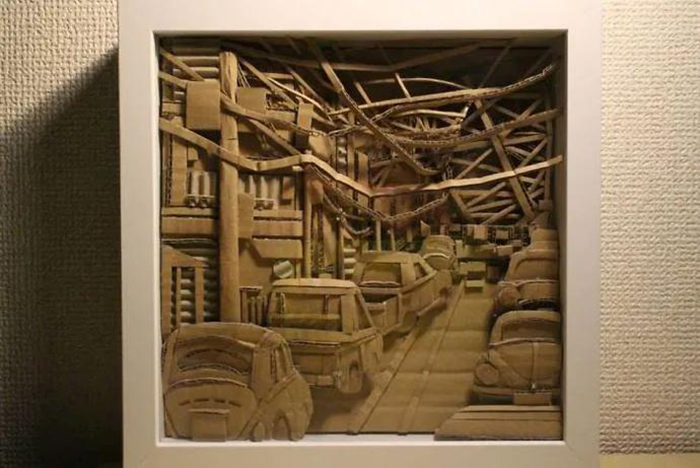 因為心完全沉了下來,且有了用紙箱創作來養活自己的堅定目標,所以她接下來更加細心和投入,之后陸續創作出來的作品也更加復雜和精細。