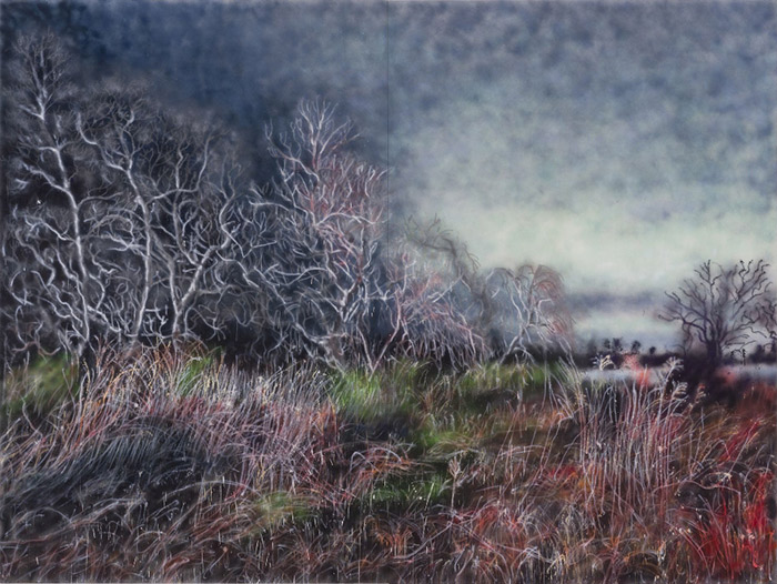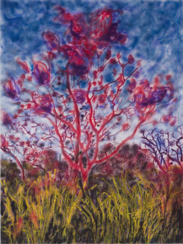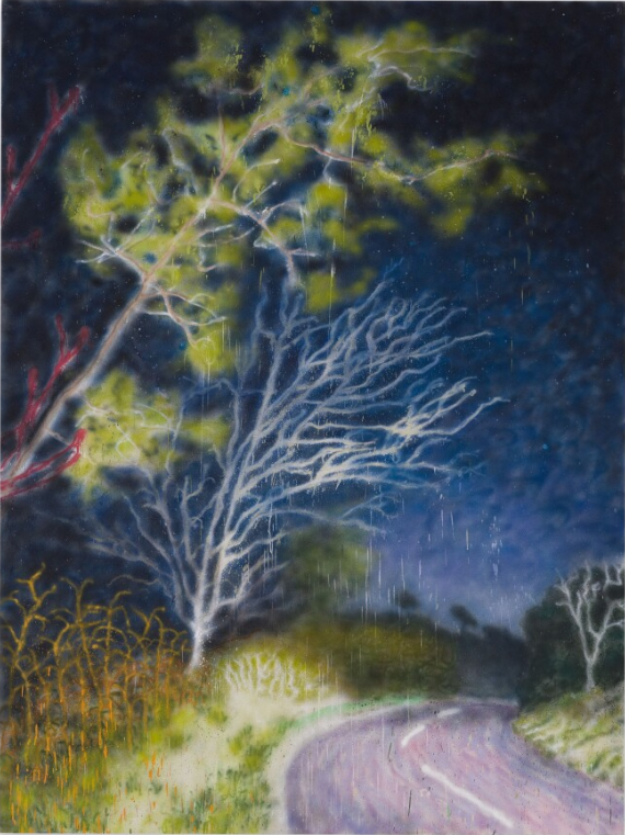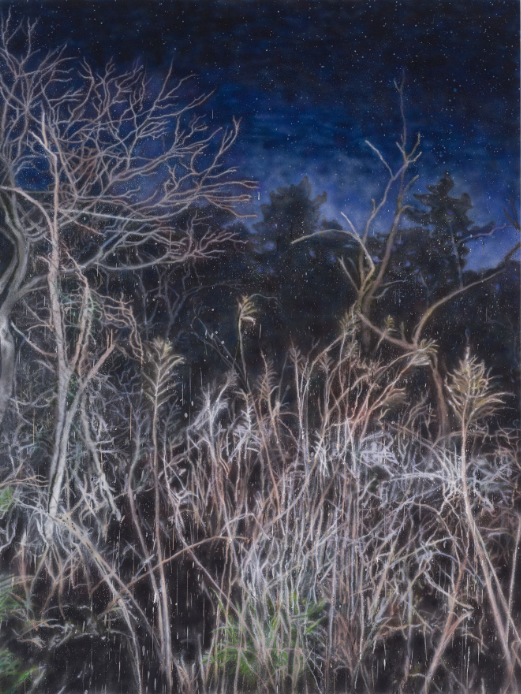 這批新作是一批夜晚題材的風景,實際上,很多當代藝術家都喜歡表現夜景,曾梵志布滿荊棘的夜景表達了自然狂野之力,彼得·多伊格的夜景更像一種童話般的夢幻感。