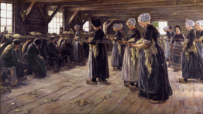 “紡紗車間”*(Flax Spinners in Laren),馬克思·利伯曼,油畫(1.35米*2.32米),1887