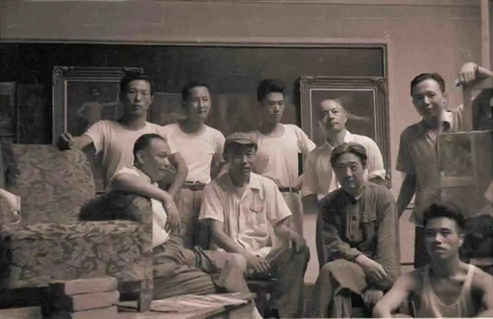 1946年,北平藝專和北平美術工作者協會同仁攝于北平藝專。戴澤位于前排右一。