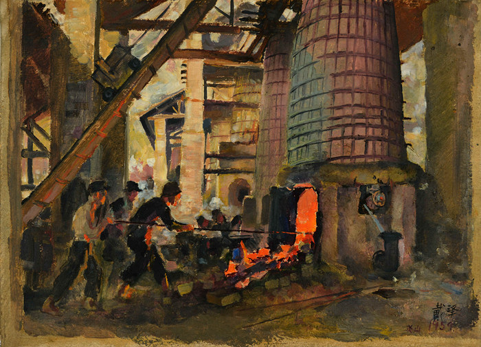 煉鐵車間 紙本油畫 32.5×23cm 1959年