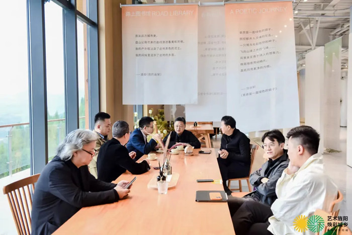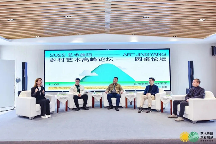 從左至右:名泰文化藝術有限公司總裁、青年藝術100總監彭瑋,重慶市設計院城市建筑三院副院長、重慶市住建委城市更新技術平臺專家董小路,山東商會鄉村振興委員會主任張偉,藝術澳門創始人、澳門文化藝術行業協會會長、廣東省網商協會執行會長何健宇,高槐村新農人、德陽市作家協會副主席、T39創意園董事長周中罡