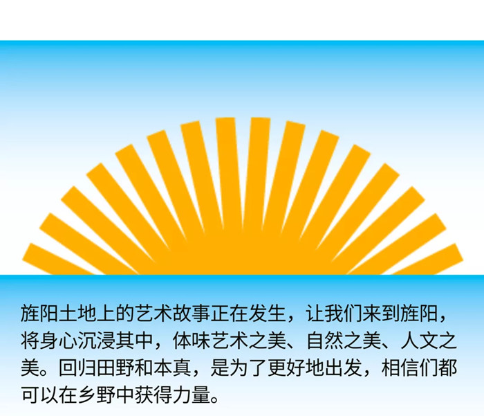 藝術的故事正在這片充滿可能的熱土上發生,這片土地孕育的山川、河流、田野以及人民正飽含著熱情期待著人們的回歸。用藝術助力鄉村振興,發掘旌陽城鄉傳統文化的底蘊、精神和價值,創造根植于旌陽當地文化的藝術項目。讓我們將人們的目光帶到旌陽這片土地,助力旌陽全域全民美育的提升。