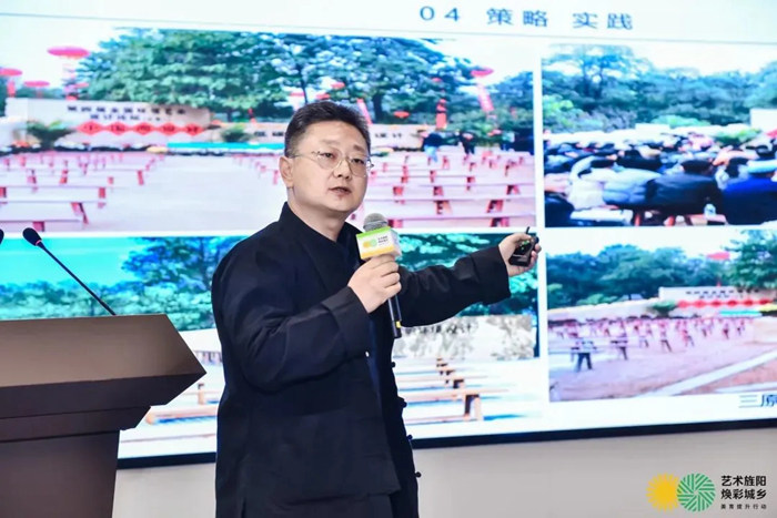 趙力教授在講話中提到,在這樣一個發人奮進的大背景下,他非常高興能夠與旌陽區簽訂橫向課題,以旌陽全域美育提升計劃為契機,通過藝術駐留、藝術駐村等為抓手,導入全國性的藝術資源,提出“1+1+N”的美育創新模式,在城市、鄉村兩個場域,深入生活,創新創作,融合產業,服務社會,推動美育,美化生活。