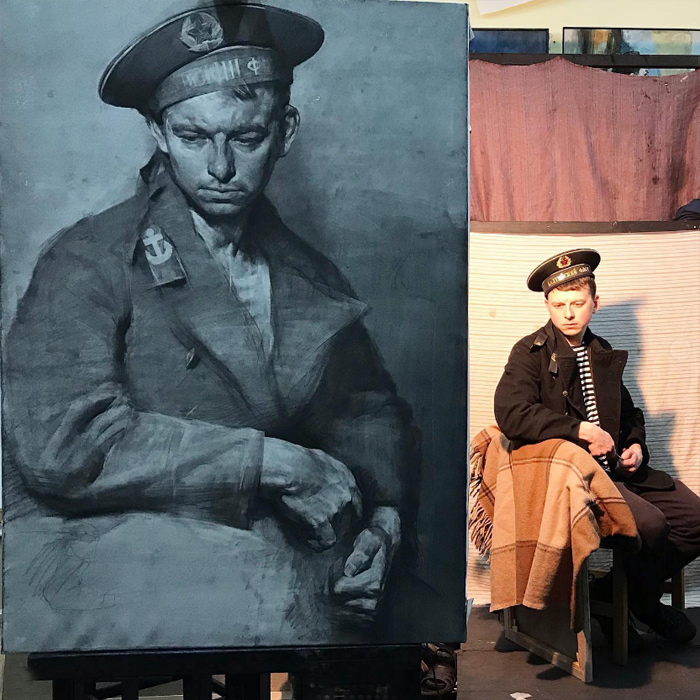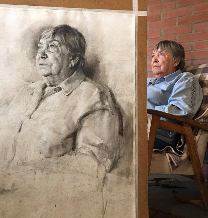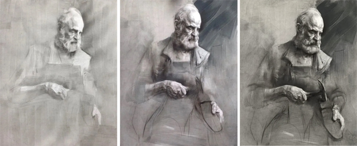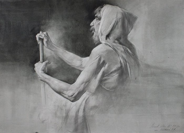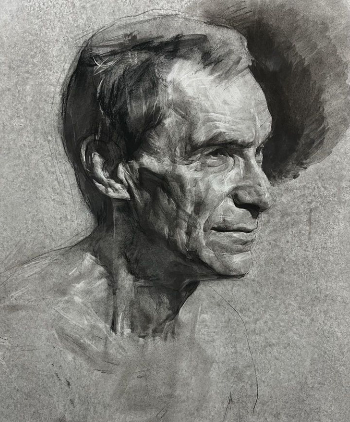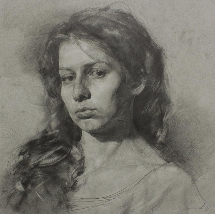 所以我們能在他的作品中看到Ivan Loginov的強大功底,有時只用一根木炭條、一根擦筆,干凈利落的線條,就可以賦予作品鮮活的生命力。