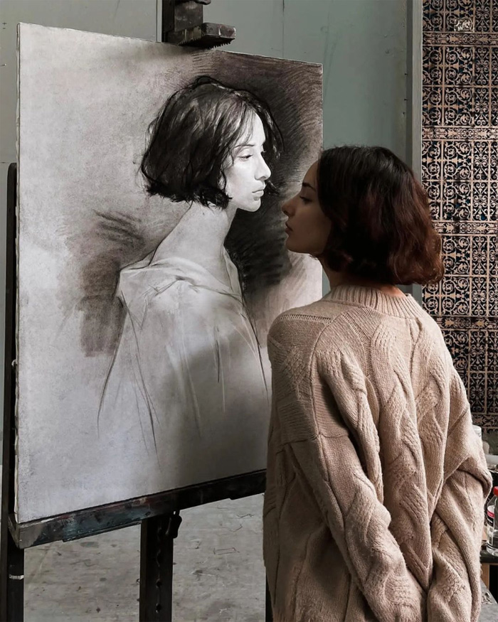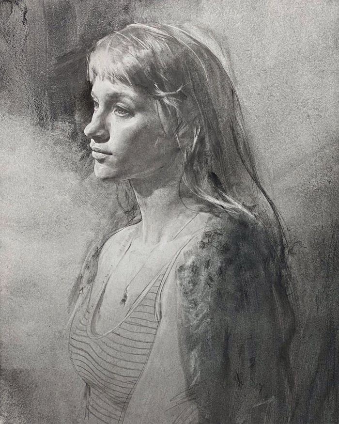 Ivan Loginov擅長學院派肖像畫,他的素描作品結構嚴謹,人體造型功底扎實,表情捕捉能力極為突出,手法明快、精煉、準確,雖源自傳統蘇派素描,卻又融入大量鮮明的個人風格,表現力渲染力極強,使得他的作品備受追捧,尤其是年輕群體,他在Instagram上擁有8.7萬的粉絲群。