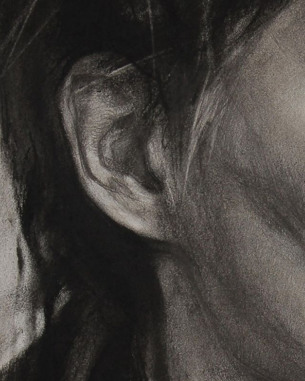 “畫素描不能用‘大概、‘好像’、‘應該是’去塑造,而是必須要對人體每一塊骨骼、每一塊肌肉、每一寸光影研究透徹,從起稿到成品的每一筆每一畫都要認真負責?!?/p>