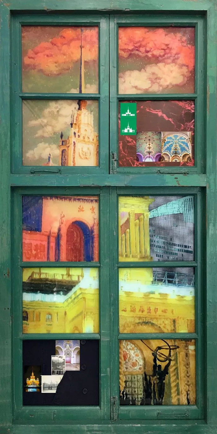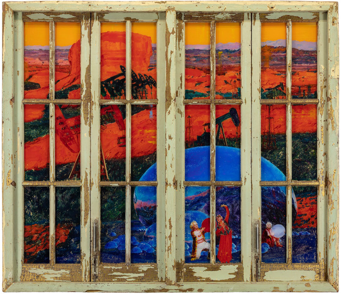 克拉瑪依的卡普爾 Kapoor in Karamay 老木窗、油彩、有機玻璃 antique wooden window, oil paint, plexiglass 159.5X184X10cm 2022.9-10