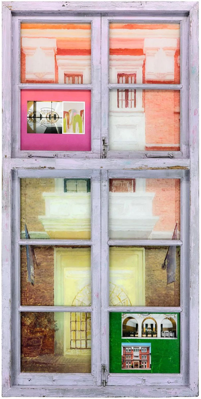 有這樣一位中國當代藝術家,他的作品幾乎沒有畫框,而是以老舊的木窗框代替,圖像被置入窗框后面,觀眾仿佛在隔著老房子的斑駁的窗框去窺探窗外的景色,那些已經消逝的都市風景、日新月異的現代建筑、都市夜空的燈牌、一樓一隅、在氤氳迷離的氛圍中一點一滴地拼貼著都市的記憶。他就是畢業于中國美術學院,常年居住在杭州的青年藝術家——李青。