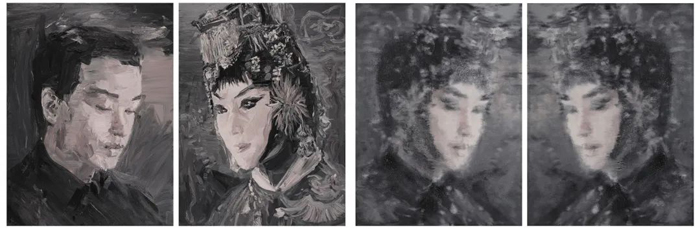 李青:相比圖像,繪畫會更自由一些,它是一種流動的媒介,它可以做單純的圖像做不到的事情,它其實會對圖像有更多改變的空間。另外繪畫會帶有更多情感的發揮,繪畫語言和個人的參與度都會更強。像《互毀而同一的像》系列,正是因為顏料流動性的特性,它才能實現這個系列。因為圖像是在顏料沒有干燥的時候,兩幅畫互相印在一起,才成為兩者之間模糊的圖像,這個操作的過程只有油畫這種材質才能實現。